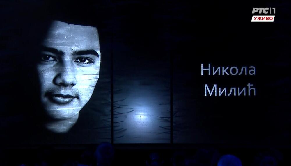 Kod spomenika Desanki Maksimović na Tašmajdanu postavljen je veliki video bim na kom se prikazuju fotografije ubijene dece i čuvara. Fotografije na kojima su srećni i nasmejani.
