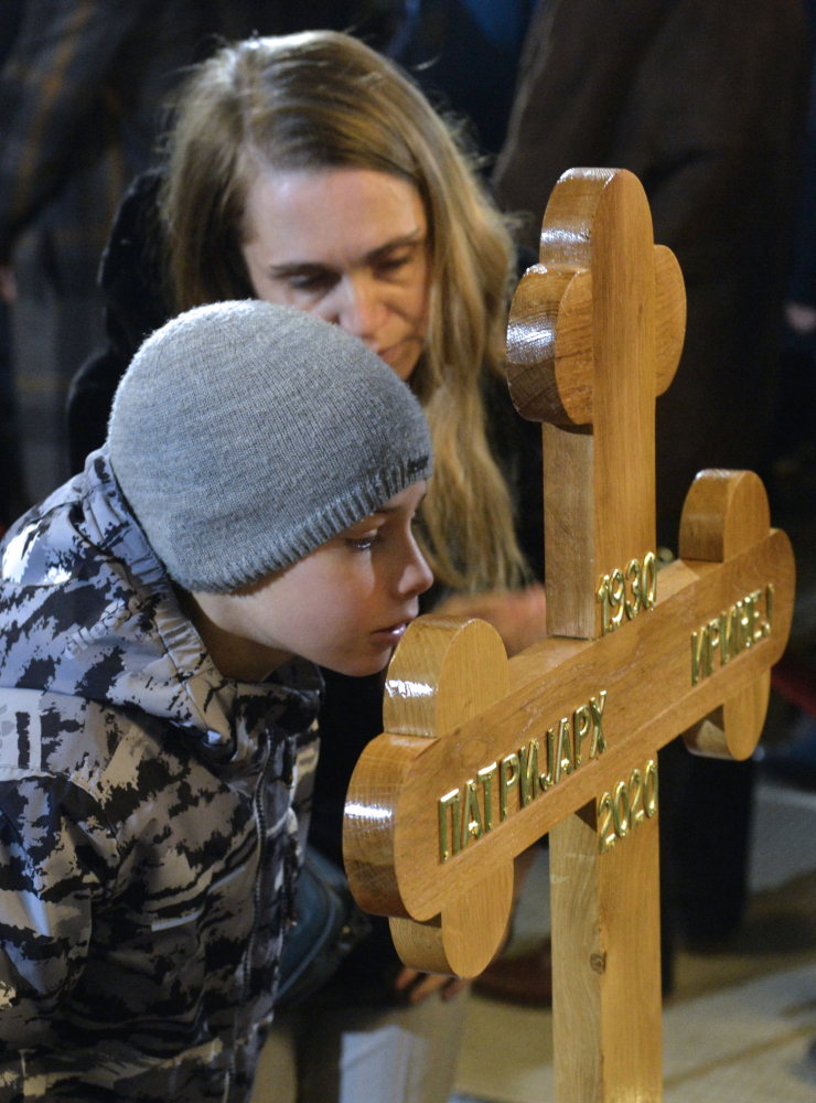Njegovom odlukom Irinej je, poput Lenjina u Mauzoleju, izložen u Sabornoj crkvi u otvorenom sanduku, delimično prekrivenim staklom. To su staklo juče tokom celog dana celivali vernici i deca, u iznimnim slučajevima zaštićeni maskama. Celivan je i krst, a delila se i pričest, iz jedne kašike, kao što to nalažu običaji u normalnim vremenima – u kojima odavno ne živimo.