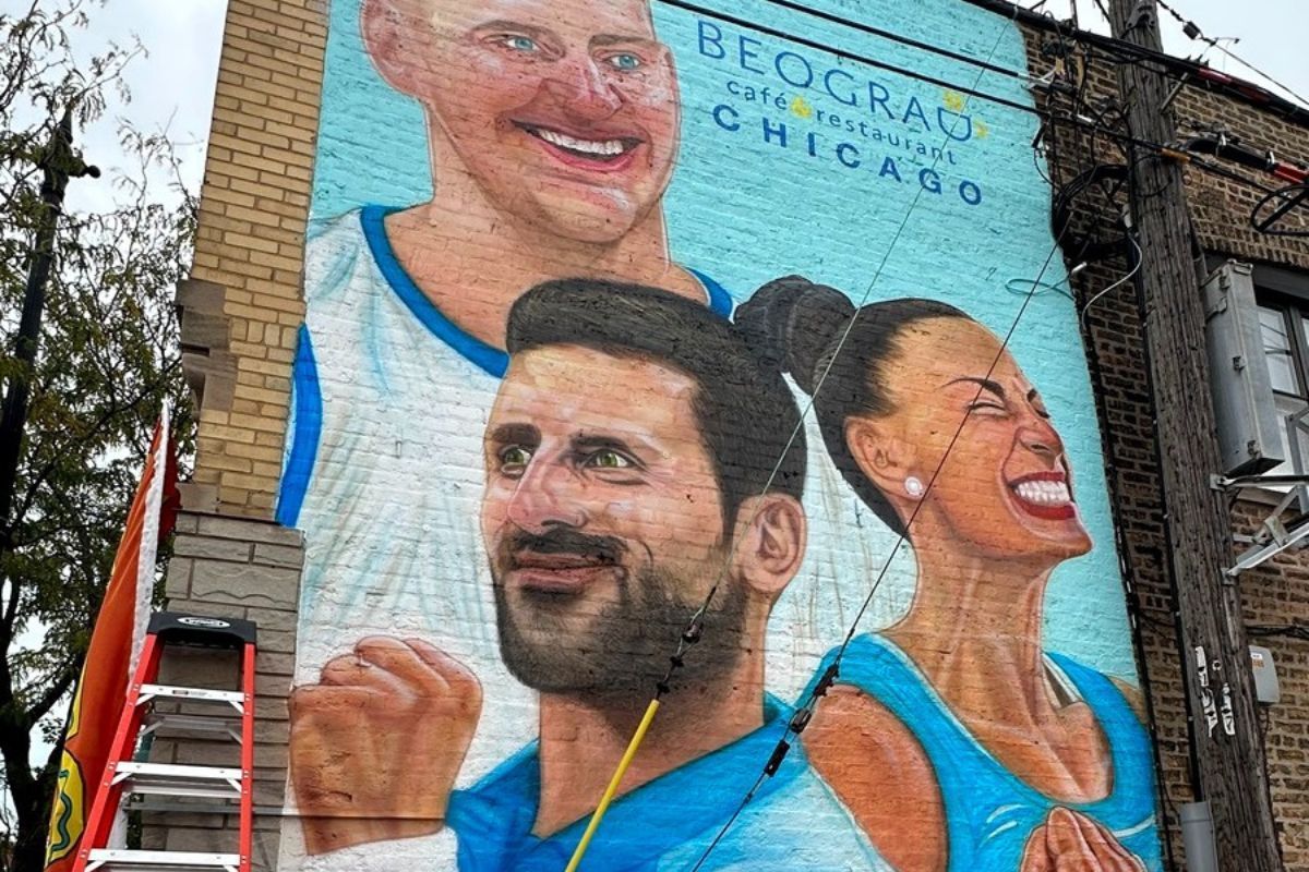 U Čikagu je pre par dana završen mural sa likvima Novaka Đokovića, Nikole Jokića i Ivane Vulete. Ogromni mural visine 26 i širine 15 fiti nalazi na zgradi popuarnog Beograd kafe restorana na Irving Park ulici.