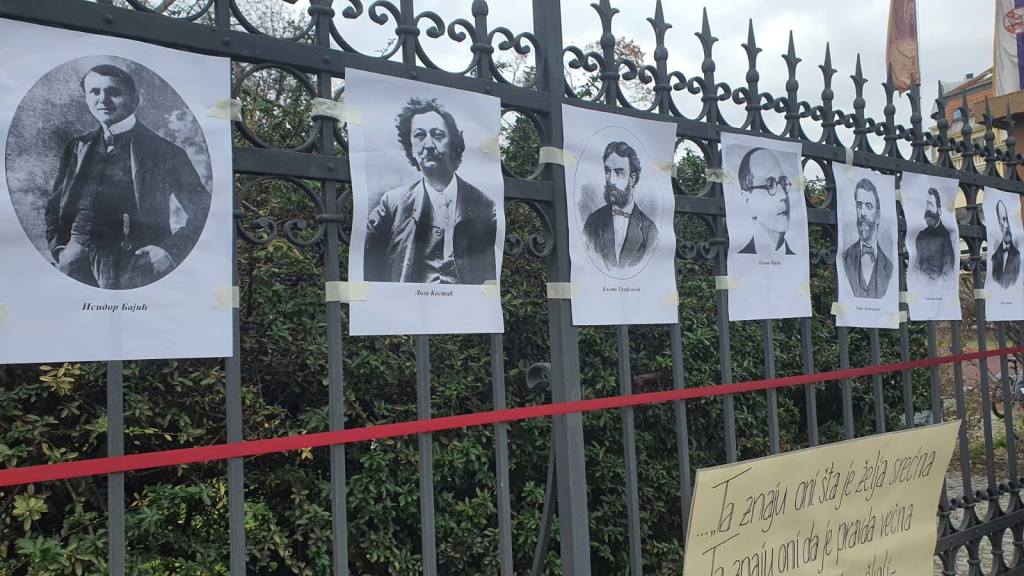Skup je počeo oko 11 časova a učenici Jovine gimnazije na ogradu dvorišta škole su okačili fotografije Jovana Jovanovića Zmaja, Isidora Bajića, Laze Kostića, Koste Trifkovića, Ignjata Pavlasa, Đorđa Natoševića, Svetozara Miletića, Đure Daničića.