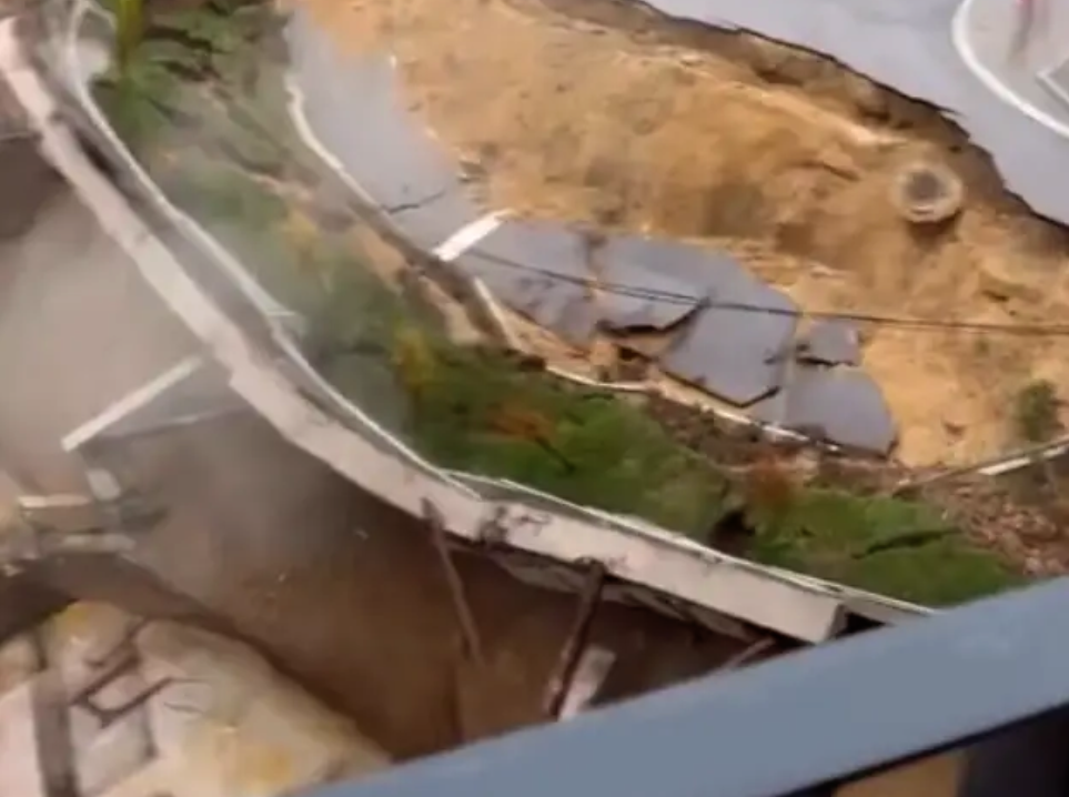 Na fotografijama i snimcima koje je taj sajt objavio vidi se trenutak obrušavanja dela pristupne saobraćajnice i potpornih zidova.