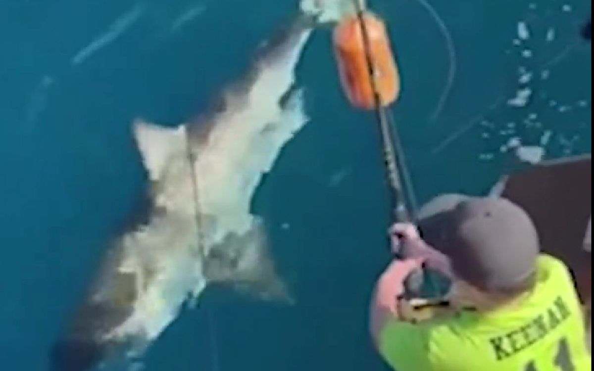 Nisu je izvukli na brod jer je zabranjeno zakonom da se velike bele ajkule izvlače van vode, ali je kapetan označio pre nego što su je pustili.
