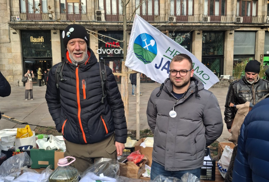 A series of stalls is made up of environmental organizations, starting with “Rangers of Eastern Serbia,” with the message that “there will be no mine,” followed by “We Won’t Give Up Jadar,” offering products from nature – honey, ajvar, ground tomatoes.