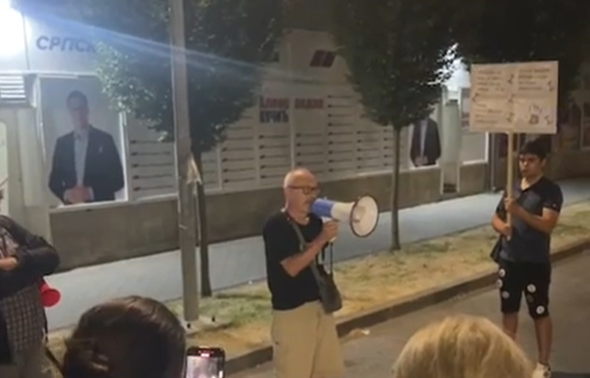 Academician Jovan Šetrajčić, after reporting the attack to the police and being released from the Urgent Center in Vrbas, returned to the protest in Srbobran and addressed the crowd there.