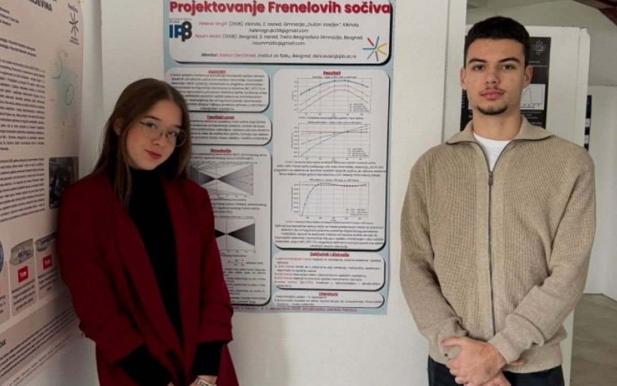 She excelled with the paper “Design of Fresnel Lenses,” which she completed together with Naum Matić from Belgrade, within the IS Petnica program and under the mentorship of Aleksa Denčevski. At the same competition last year, the young woman from Kikinda won third place, and her latest success takes her to India next month for an international showcase.