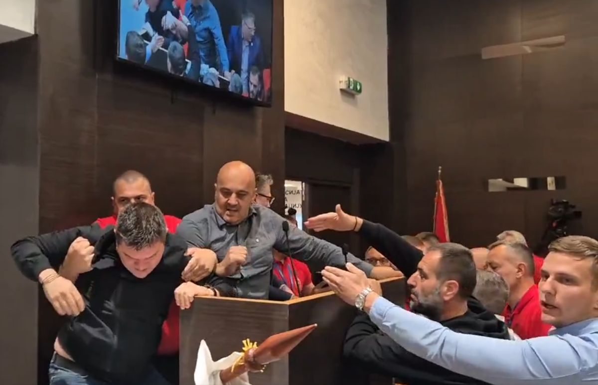The chaos in the Kraljevo Assembly began when a member of the assembly security tried to remove Vladan Slavković, a councilor from the Local Front, from the podium, leading to a physical altercation.