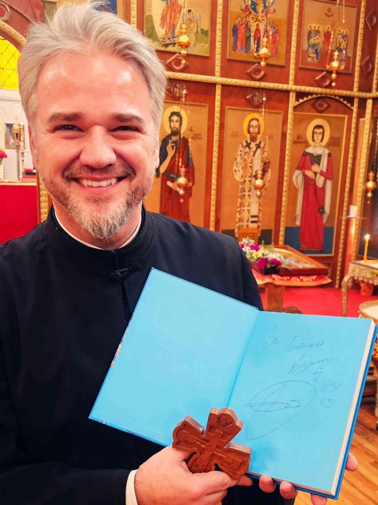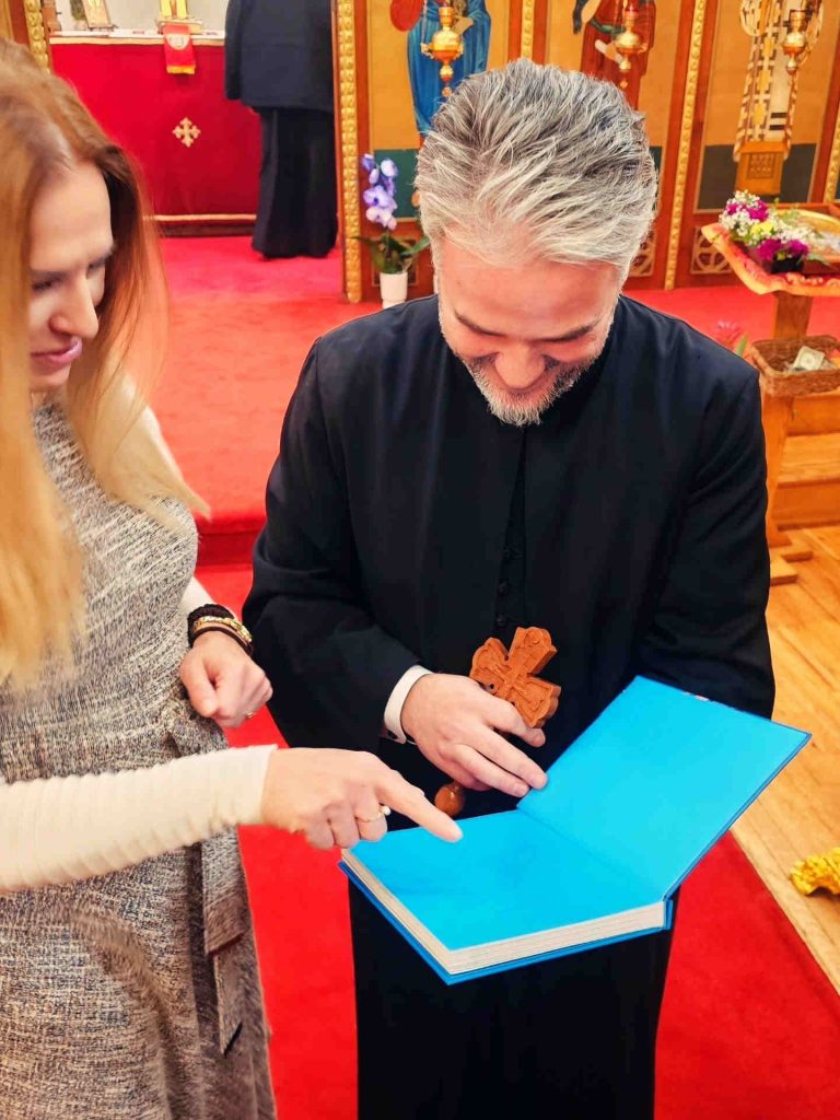 Our beloved priest, Father Aleksandar — Father Aca, as we all call him — is truly loved and respected by the entire Chicago Orthodox community. As a devoted shepherd of faith and a humble servant of God, he guides us not only with words but also by his own example. Together with his wonderful family and six children, he embodies true Christian values: love, sacrifice, unity, and faith. As the priest of our church of St. Stefan Dečanski, he is a constant source of spiritual strength, support, and comfort. His presence reminds us of what it truly means to serve God and the people with an open heart. We are blessed to have him and happy that we were able to present him with this small token of appreciation, said Nada and Aleksandar.