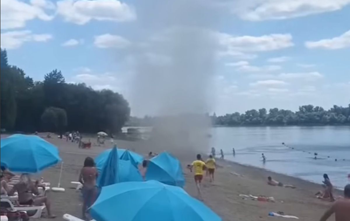 A video is circulating on social media from a beach in Sremska Mitrovica, showing a “mini tornado” suddenly appearing on the beach.