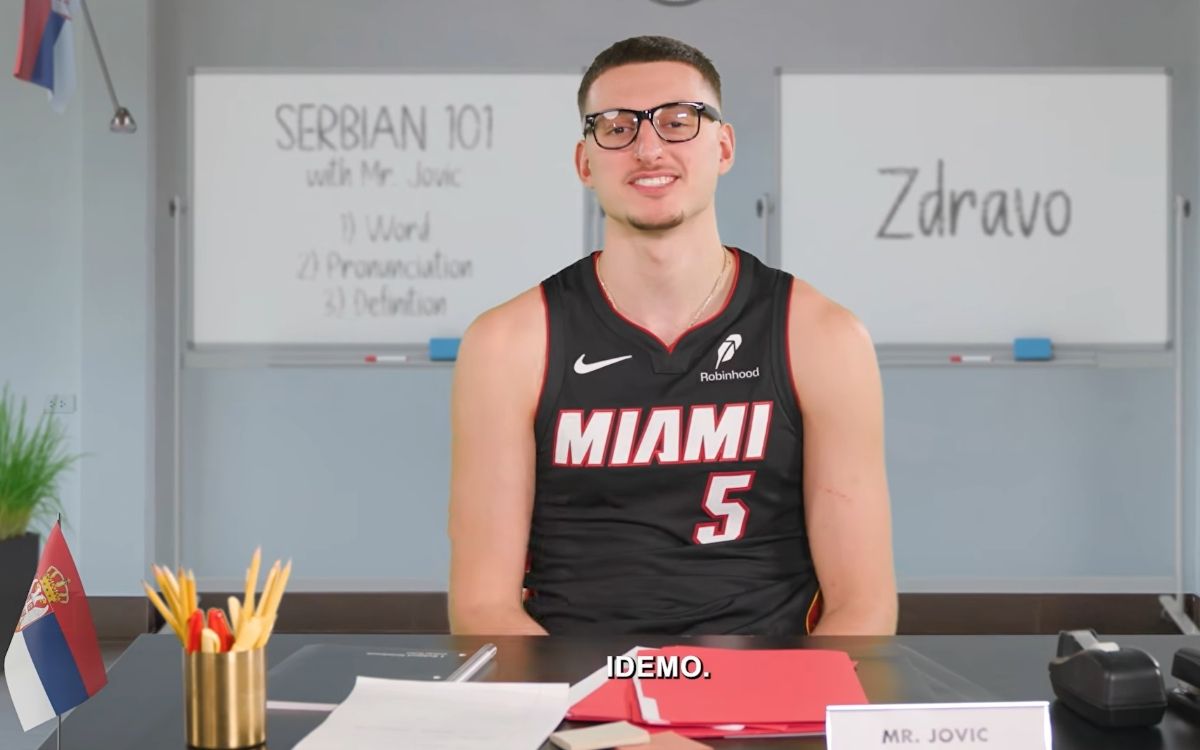 Serbian national team player and Miami basketball player, Nikola Jović, briefly traded the court for a classroom. A humorous video appeared on social media in which Jović takes on the role of a professor and holds the “first class” of the Serbian language for his teammates, accompanied by volleys of laughter and completely sincere reactions from the Americans.