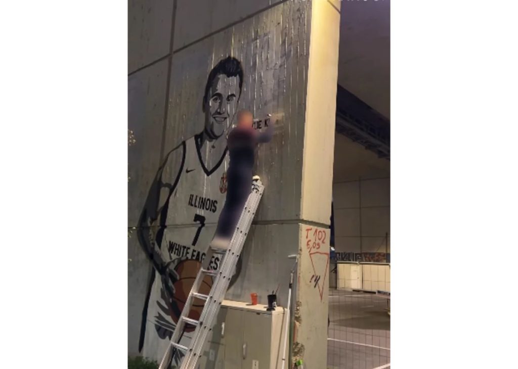 Charlie Kirk is depicted on the mural in the jersey of the Illinois White Eagles (Beli orlovi iz Ilinoja) – a basketball club in which the majority of players were Serbs!
