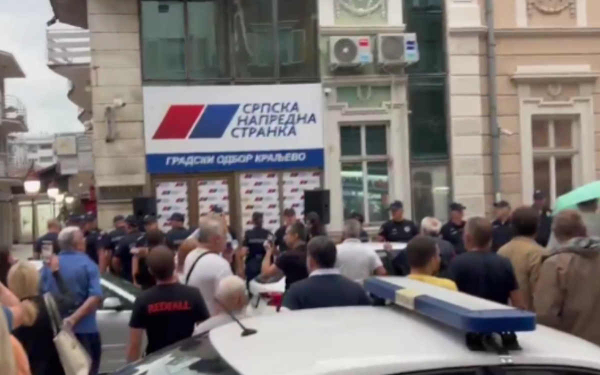 During a protest walk by citizens in Kraljevo due to the participation of security personnel from this city in expelling students from DUNP, citizens were pelted with eggs from the premises of the Serbian Progressive Party, after which the gathered crowd retaliated.