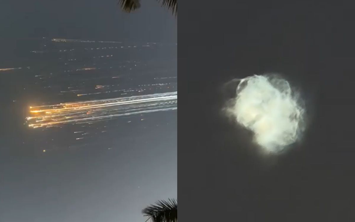 Several videos circulating on social media, taken from SpaceX’s live broadcast, show burning rocket debris falling near South Florida and the Bahamas after Starship broke apart in space, shortly after it began spinning uncontrollably with its engines shut down.