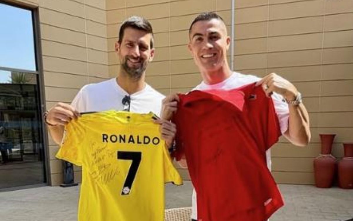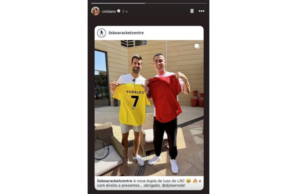 Novak Đoković and Cristiano Ronaldo met at a tennis club in Riyadh. They chatted, exchanged gifts, and took photos for posterity.