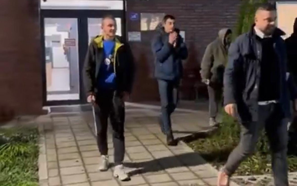 Those gathered outside the station and Milan Jaćimović headed to the Banovina building, where Milan’s father Milomir Jaćimović is on a hunger strike.