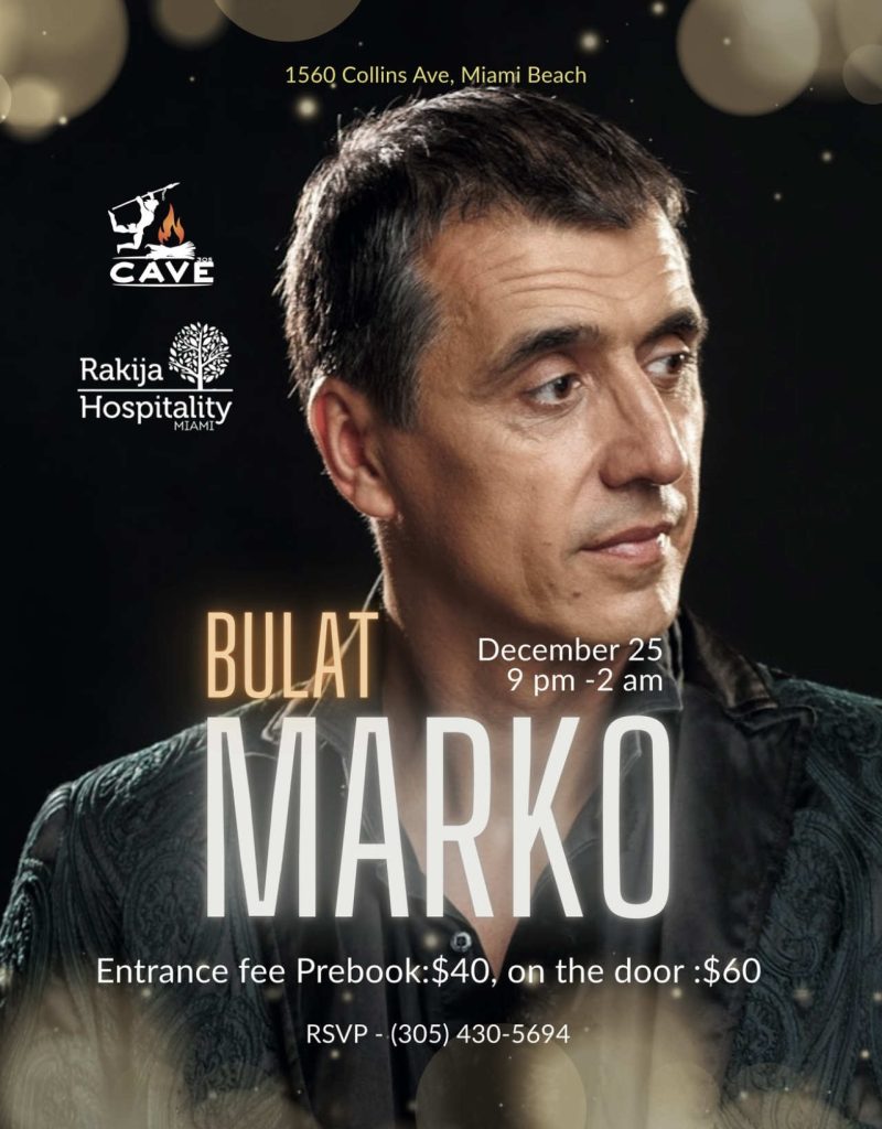The first on stage is folk star Marko Bulat, who is coming from Serbia just for this occasion and whom you will have the opportunity to hear on December 25th from 9 PM to 2 AM in the prestigious club Cave 305.