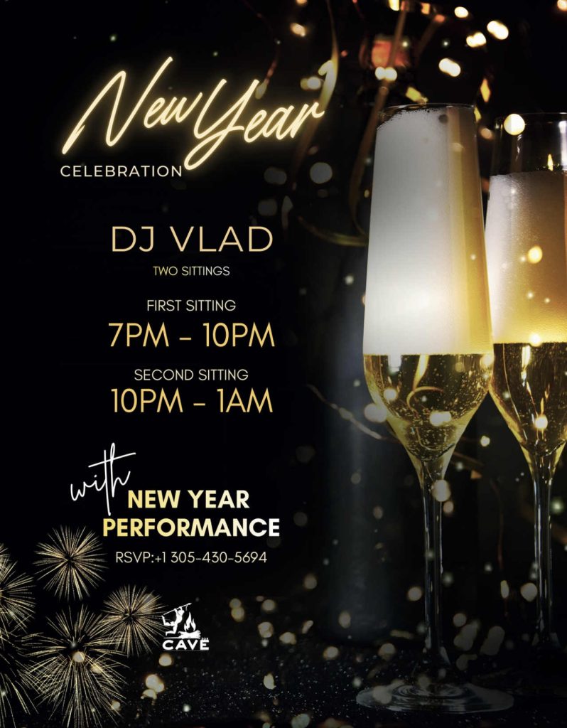 - If you stop by Cave 305, get ready for a crazy party thrown by DJ Vlad, and it’s up to you to choose whether you’ll come here for a warm-up (7-10 PM) or if you’ll ring in the New Year 2026 with them (10 PM-1 AM). Reserve your table at (305) 430 – 5694!
