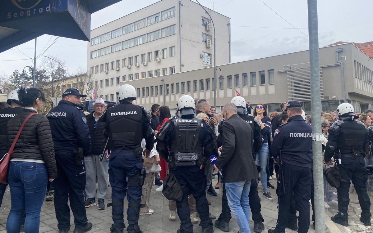 Dragan Marinković, editor of the Rešetka portal, who reports for N1 from Leskovac, said that citizens gathered about 20 meters from the National Theater in Leskovac and shouted “Go away” and “pump, pump” and whistled. They were prevented from reaching the National Theater building itself by a double police cordon.