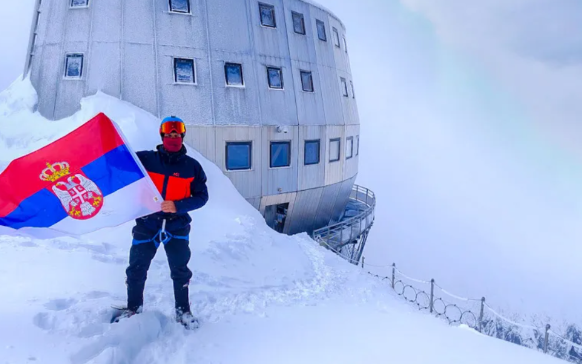 Due to extremely poor weather conditions – snow, wind, and fog – Jugoslav was unable to reach the very summit, but on June 3, 2025, at the highest accessible point on the way to Mont Blanc, at an altitude of 3,835 meters, he unfurled the Serbian flag, university flags, and a banner of support for students.