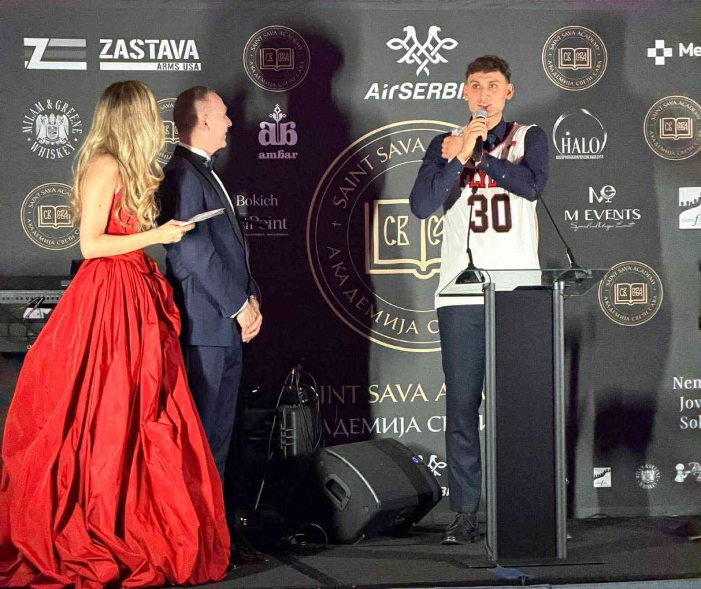 The evening also featured an auction of valuable sports memorabilia and works of art, including an autographed Novak Djokovic cap, an NBA jersey of Nikola Vučević, and an oil painting of Nikola Jokić — not quite life-sized, but large enough to adorn the wall of someone’s living room.