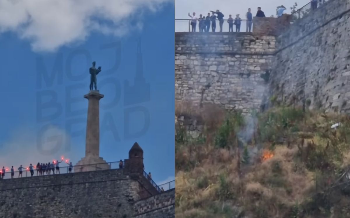 “Graduates lit flares, and the grass immediately caught fire! It all happened during a graduation celebration, and the flames quickly spread. It’s currently unknown if the fire has been extinguished. We hope no one was injured. Celebrate, yes, but be cautious with pyrotechnics – Kalemegdan is not a place for fire,” the page posted earlier.