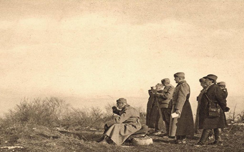 News of the outbreak of World War I in the summer of 1914 found him in Vranjska Banja. Since he was already seventy years old, the vojvodas (military commanders) and his son led all operations. After the victories in the battles of Cer and Kolubara against the Austro-Hungarian army, in the autumn of 1915, enemy forces tightened their encirclement around Serbia. Soldiers, civilians, and the state apparatus began their retreat across Albania. King Peter also trudged through the Albanian barren lands, and after the ordeal, he went to the vicinity of Thessaloniki, where he remained until the end of the war in 1918.