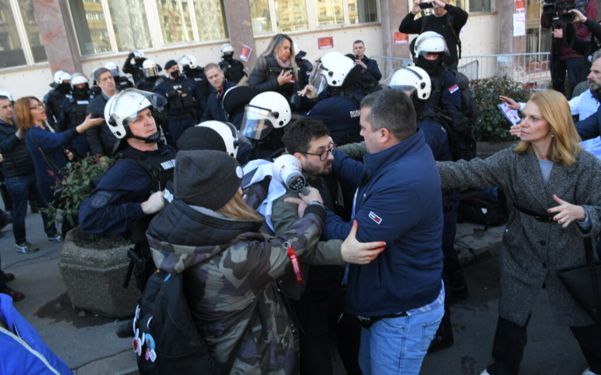 Unrest erupted in front of the Belgrade Assembly building shortly before noon. According to an N1 reporter, a scuffle broke out between gathered citizens and security personnel, followed by a police intervention. The tension lasted for about 20 minutes before subsiding, with police withdrawing from the scene.