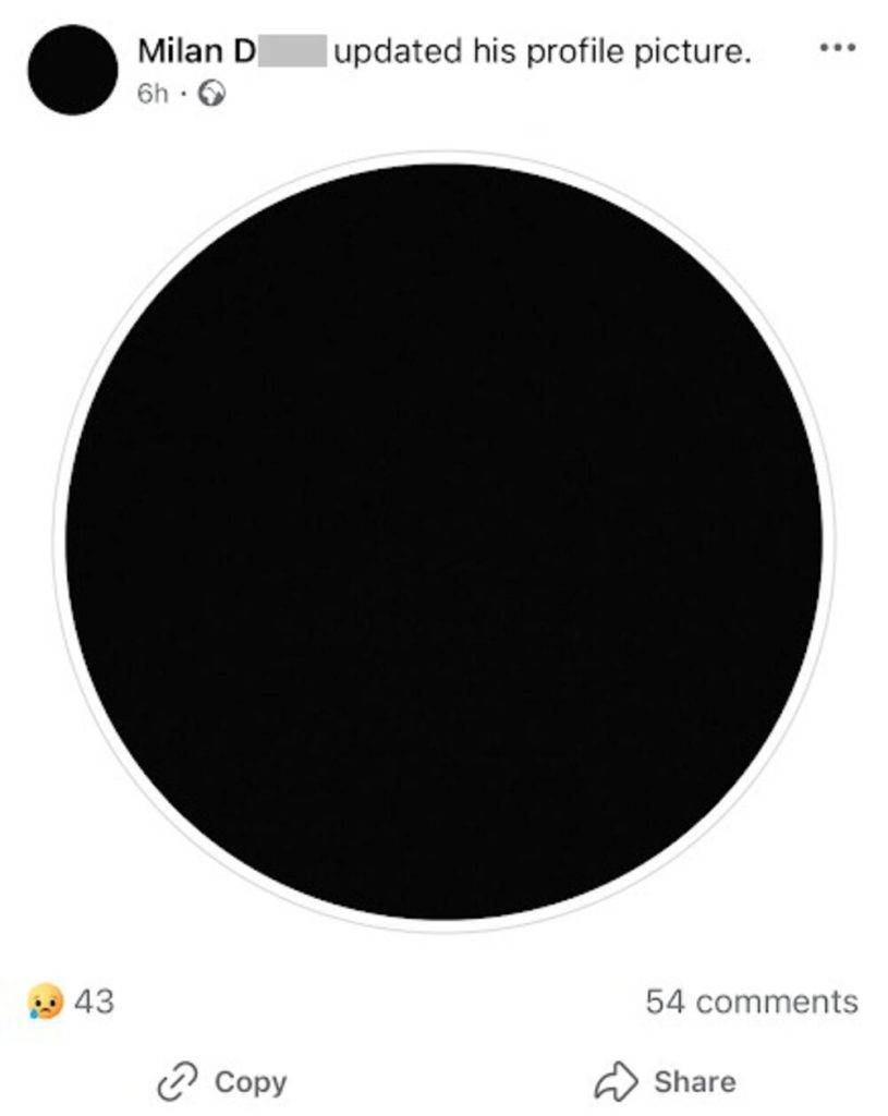 On je na društvenim mrežama postavio crnu naslovnu fotografiju, što predstavlja duboku žalost.