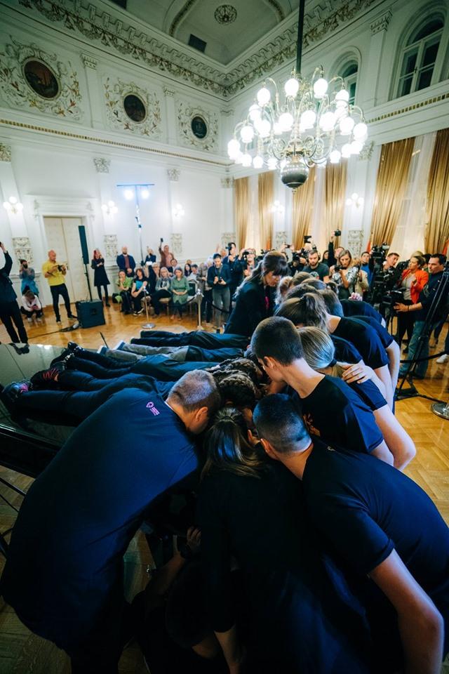 Lepa vest iz Novog Sada. Učenici Muzičke škole „Isidor Bajić“, njih 23, uz podršku #OPENS2019 (Omladinska prestonica Evrope Novi Sad), obarali su danas Ginisov rekord, svirajući istovremeno na jednom klaviru.