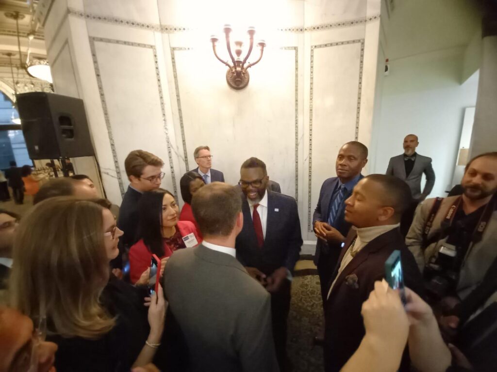 SRDAČAN SUSRET: Konzul Damjan Jović u razgovoru sa gradonačelnikom Čikaga Brendonom Džonsonom