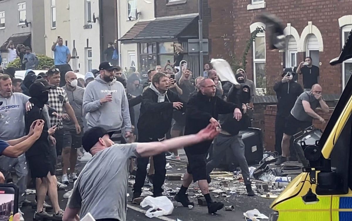 Policija je dodala da je nasilna grupa zapalila policijski kombi, a pored je bilo prisutno nekoliko automobila pristalica Engleske odbrambene lige, kranje desničarske grupe, dok su neredi bili motivisani glasinama o identitetu tinejdžera uhapšenog zbog zločina.