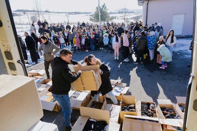 U okviru ovogodišnjeg božićnog konvoja u južnu srpsku pokrajinu dopremljen je pun šleper nove garderobe, igračaka i školskog pribora za decu, kao i kućni aparati, namirnice, šporeti i stočna grla za vredne srpske domaćine.