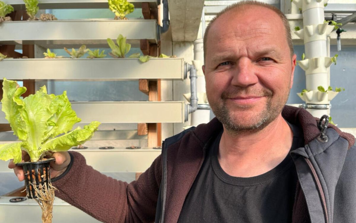 Na njegovom imanju se u plasteniku se primenom akvaponije uzgaja zelena salata, dok ispod poda samog plasetnika u svežoj vodi plivaju šarani i po koja albino kečiga.