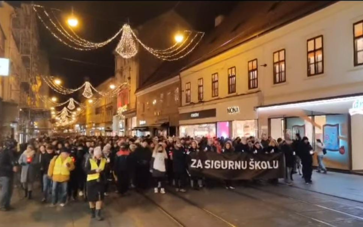 U Zagrebu i drugim hrvatskim gradovima večeras je održan protest pod nazivom „Za sigurnu školu“ u organizaciji tri obrazovna sindikata – Sindikat učitelja, Sindikat Preporod i Nezavisni sindikat zaposlenih u srednjim školama.