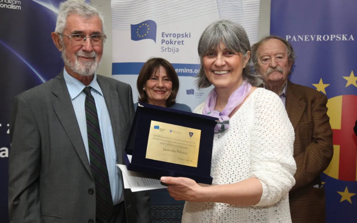 Dobitnica ovogodišnje nagrade „Živorad Kovačević“ za doprinos razvoju dobrosusedskih odnosa Srbije i regionalne saradnje Jasminka Petrović izjavila je da je posvetila tu nagradu studentima, đacima, njihovim nastavnicima i profesorima u želji da podrži kulturu i obrazovanje u Srbiji i regionu.