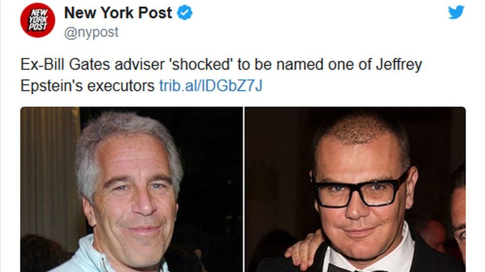 Nekadašnji savetnik Bila Gejtsa, Boris Nikolić, imenovan je u testamentu Džefrija Epštajna kao izvršitelj njegove volje. Nikolić tvrdi da nije znao da je uključen u testament. Epštajn, miloner koji je optužen za pedofiliju i trgovinu robljem, napisao je detaljnu oporuku za imovinu vrednu 600 miliona dolara samo dva dana pre nego što se ubio u … Nastavi sa čitanjem KO JE BORIS NIKOLIĆ? Srbin imenovan za izvršitelja testamenta milionera – pedofila Džefrija Epštajna