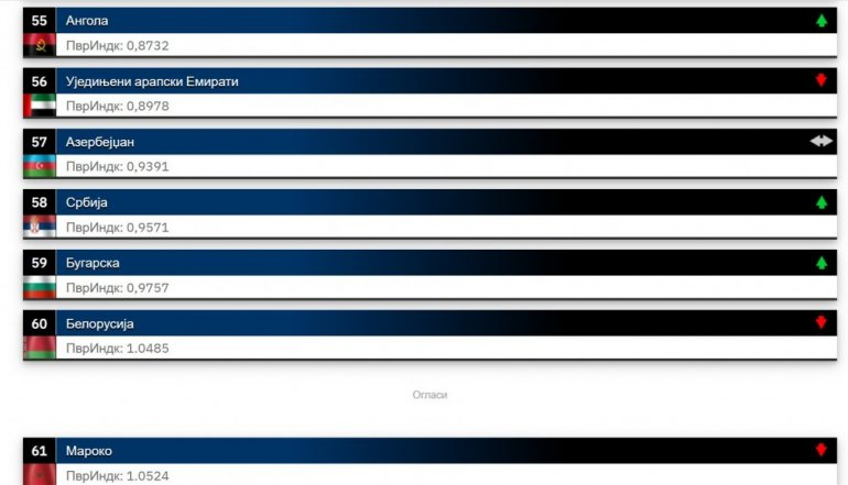 Od zemalja regiona Srbija na listi zauzima najbolju, 58. poziciju, dok su iza nje, Hrvatska na 69, Slovenija je 86, Albanija je na 91 mestu, Severna Makedonija je 108, Crna Gora 128, a BiH se nalazi na 133. poziciji.