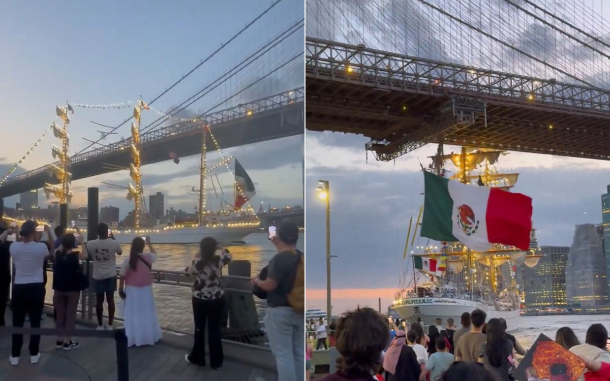 Massive ship with Mexican flags just hit the Brooklyn Bridge