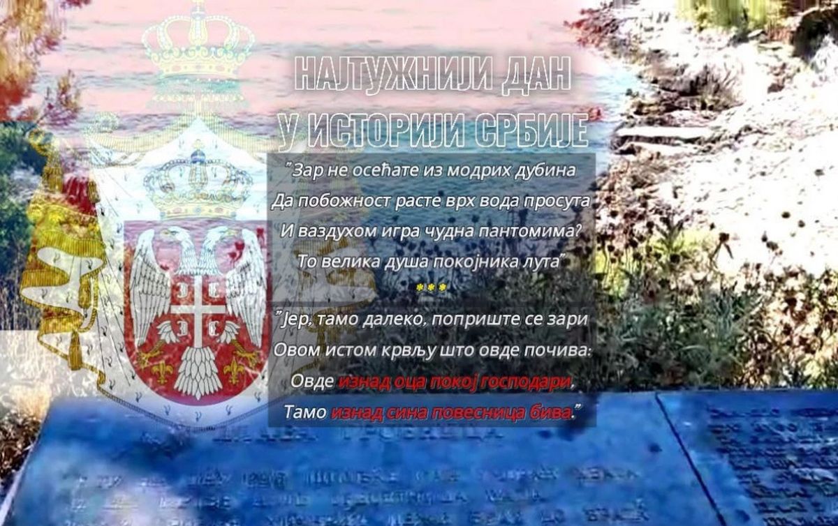 Na današnji dan, 23. januara 1916. godine, počelo je sahranjivanje srpskih vojnika u Plavu grobnicu, more naspram jugoistočne obale ostrva Krfa u koje su tokom Prvog svetskog rata polagani vojnici kada na ostrvu Vidu više nije bilo mesta.