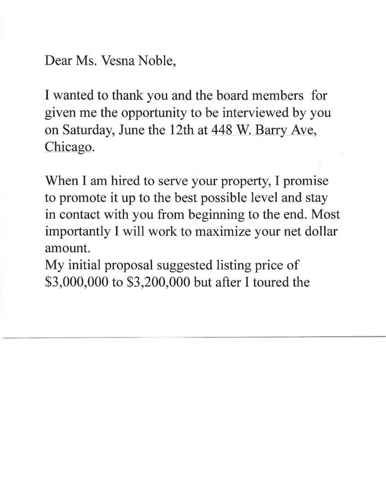 -Gospodin Ahmat je poslao pismo u kome se zahvalio i naglasio da zbog kompanijskih pravila ne može da ponudi manje od 5%. Pre toga je na moj zahtev pronašao jednu odličnu zgradu i lokaciju u Elmhurstu. Vrednost te zgrade samo u izgradnji je bila sigurno 5 miliona evra, ali je firma koja je bila vlasnik bankrotirala, a banka je stavila cenu od 2 miliona. Računali smo da možemo da je kupimo i za milion i po dolara. On nije bio prodavac te zgrade, on ju je našao (izlistao) na sajtu MLS što je mogao i svaki drugi agent, tako da je to samo još jedna od laži Vesne Noble, ističe Nebojša Radovanović.