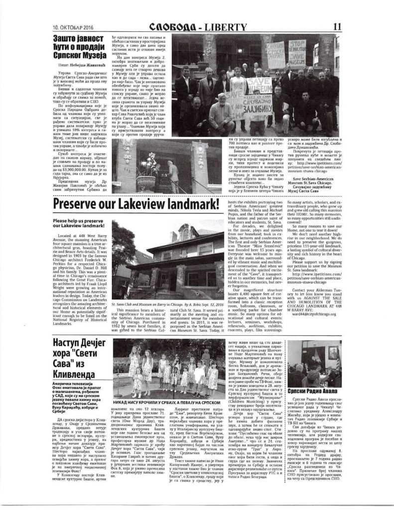 SRPSKA UDRUŽENJA PRED VRATIMA…List „Sloboda, 2016.godina