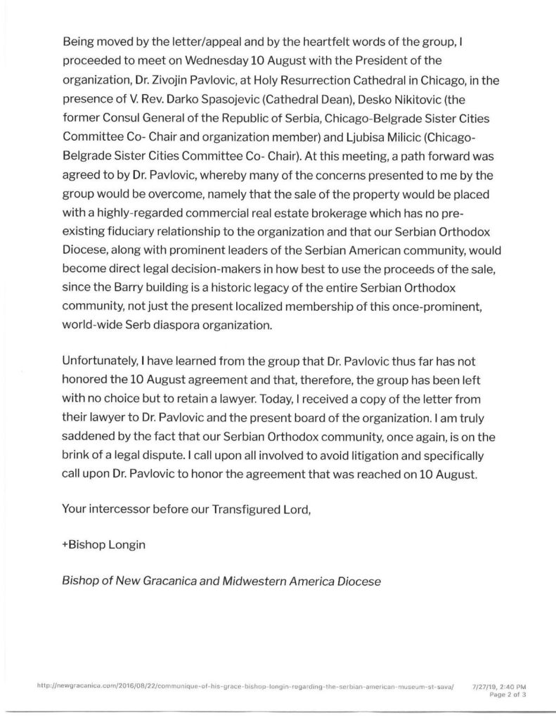 …da vladika nije nudio pomoć u rešavanju problema Muzeja „Sveti Sava“