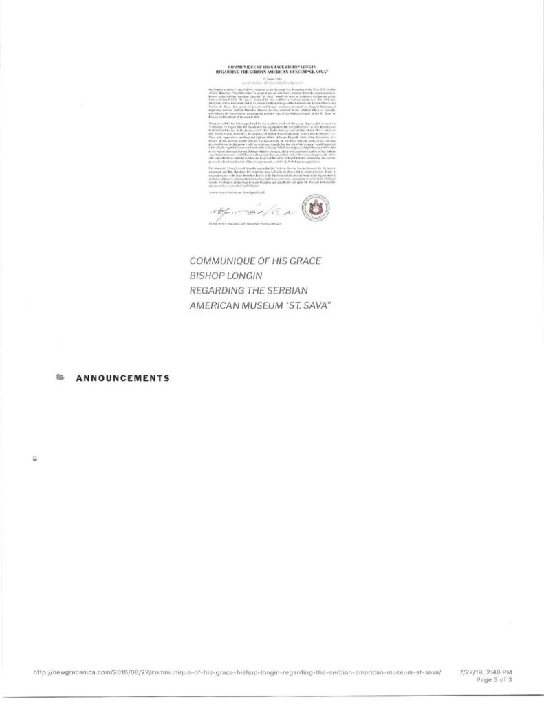 -Moram da kažem da je velika laž koju je Vesna Noble izgovorila to da niko iz Srpske zajednice nije hteo da pomogne. Nabrojaću i organizacije koje su ponudile pomoć: Srpska Bratska Pomoć, HD Božur, Sabor Krajiških Srba, Srpska Narodna Odbrana, itd. Laž je i to da su primili članove zajednice koji su hteli da pomognu na sastanku za očuvanje muzeja. O tome govore i novinski izveštaji, poput ovog iz lista „Sloboda. A neistina je i to da Vladika Longin nije hteo da pomogne, o čemu svedoči i pismo koje im je svojevremeno poslao.