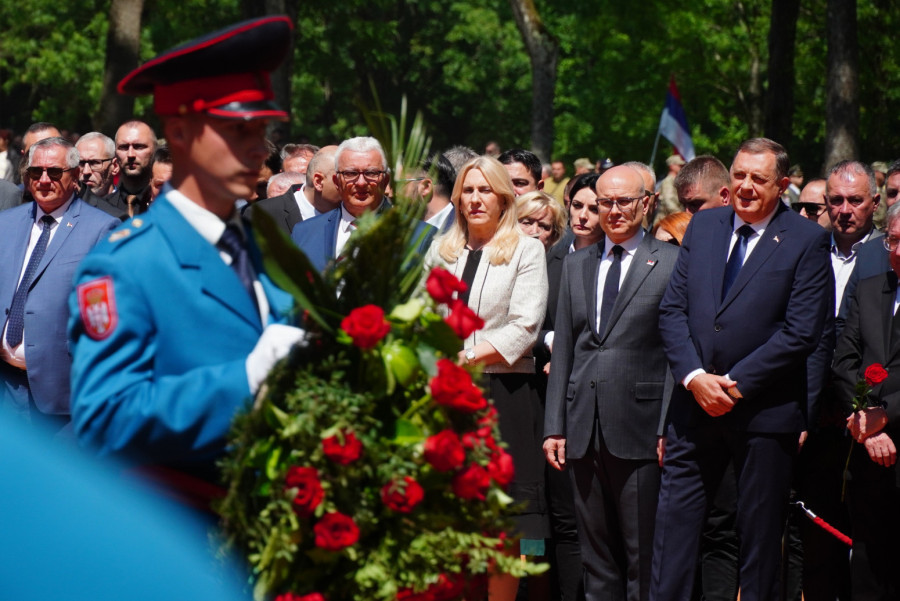 Prethodno su zvaničnici Srpske i Srbije i ostale delegacije položili vence i cveće na grobnom polju „Topole“.