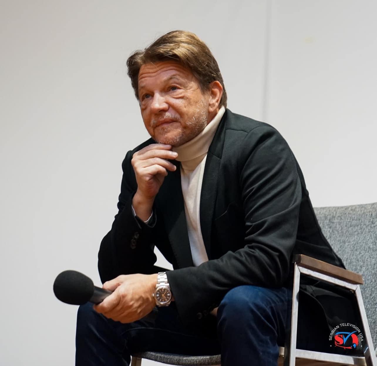 Posle kratke pauze on se vratio na scenu gde ga je intervjuisao Antonije Kovačević, glavni urednik Serbian Times, koji je bio organizator događaja.