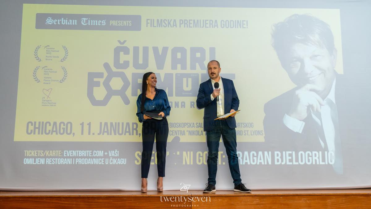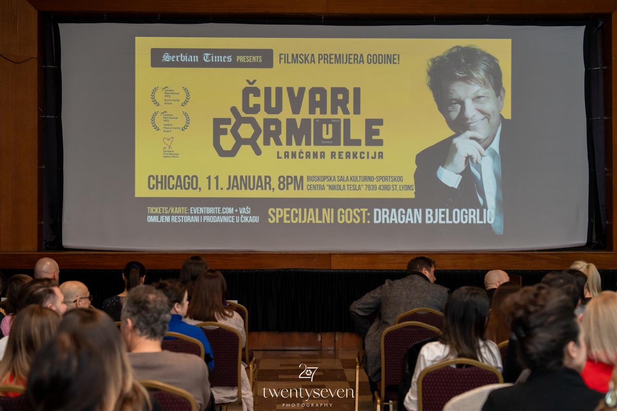 Sinoć je u Čikagu održana premijera filma “Čuvari formule” Dragana Bjelogrlića a danima rasprodata bioskopska sala Kulturnog centra „Nikola Tesla“ bila je tesna za sve one koji su želeli da vide ovo delo koje je već osvojilo nekoliko vrednih nagrada na prestižnim filmskim festivalima u svetu.