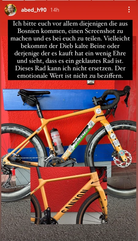 Nesretni čovek je pozvao ve koji su možda videli bicikl da mu pomognu u njegovoj potrazi. Svaka informacija je dobrodošla, a Hasan se nada da će se njegov bicikl uskoro pronaći.