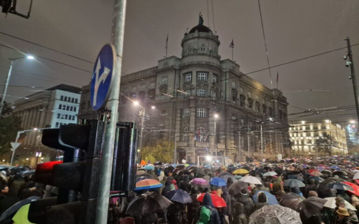 Zbog pogibije 14 ljudi na Železničkoj stanici u Novom Sadu ispred Vlade Srbije u Beogradu održava se protest, koji je počeo čitanjem imena stradalih i minutom ćutanja.