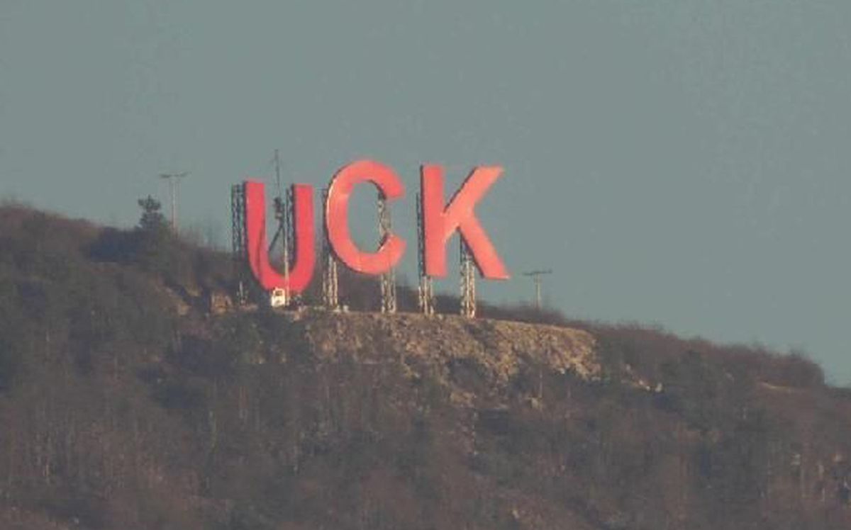 Znak „UČK“, simbol bivše albanske Oslobodilačke vojske Kosova (OVK), postavljen je na uzvišenju Crnuša iznad Kosovske Mitrovice.