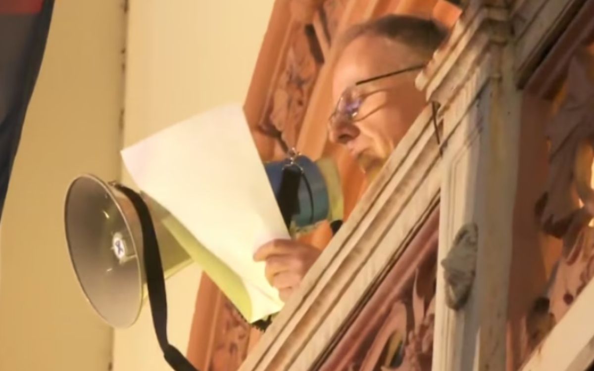Rektor Univerziteta u Beogradu Vladan Đokić obratio se sa balkona zgrade Rektorata građanima koji su se okupili na protestu ispred zgrade.
