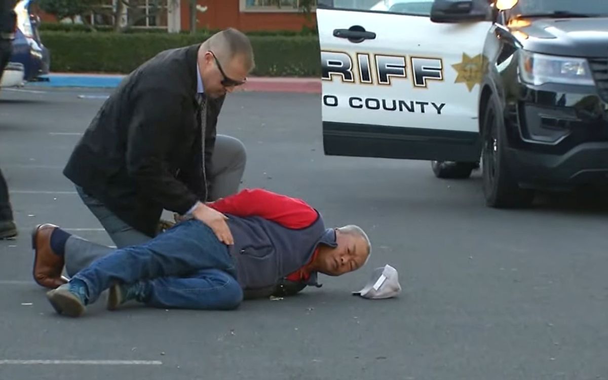 Snimak koji je objavio ABC 7 iz Half Mun Beja, pokazuje hapšenje prilikom kojeg dvojica muškaraca u civilu i jedan u uniformi, s oružjem u ruci, naređuju muškarcu da izađe iz automobila. Osumnjičeni za pucnjavu je izašao, srušen je na zemlju i pretresen. Ubrzo je na mesto događaja stiglo još naoružanih policajaca u uniformi.